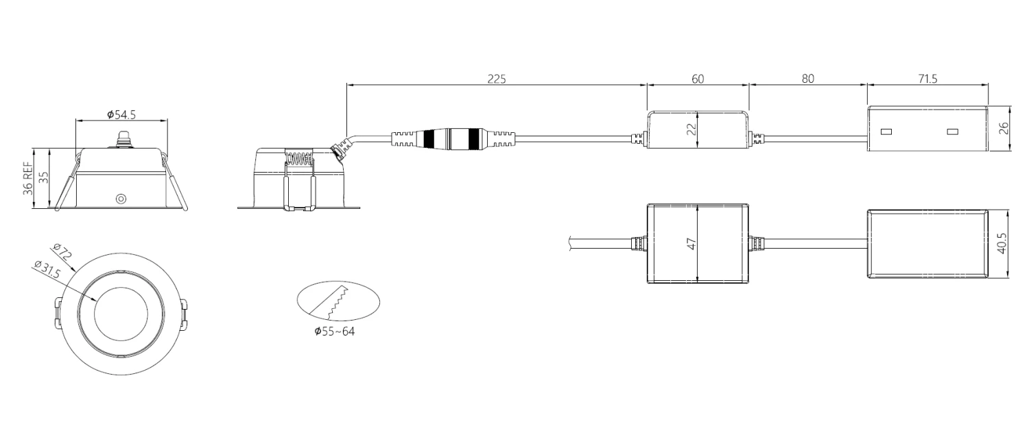 Neue, verbesserte Version des beliebten Downlights mit einer Höhe von nur 35 mm und einem Ausschnitt von 55 mm. EVO3 eignet sich perfekt für die Installation in Lattendecken oder Profilbrettern oder dort, wo der Spots nicht direkt sichtbar sein soll.