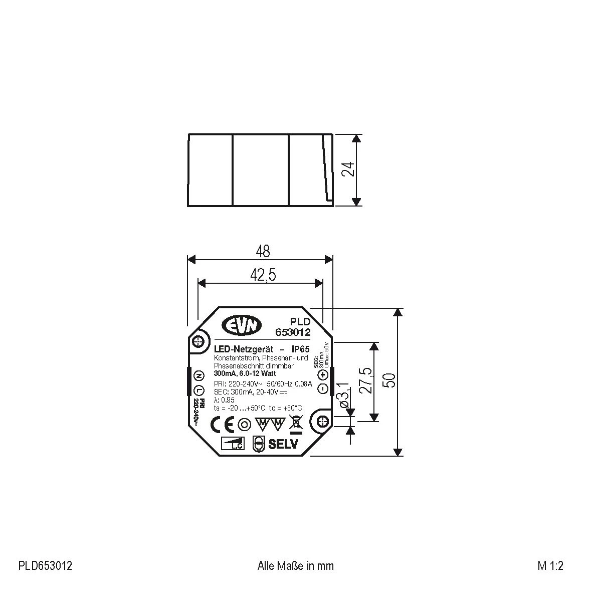 Der kurzschlussfeste Sicherheitstransformator lässt sich auf Grund der höheren Schutzart problemlos im Außenbereich einsetzen, kann aber z. B. auch beim Möbelbau verwendet werden, da die Kennzeichnung MM gegeben ist. Zusätzlich kann das Netzgerät über Phasenan- und Phasenabschnitt gedimmt werden. Die Anschlussleitungen haben eine Länge von 15cm primärseitig und 15cm sekundärseitig.