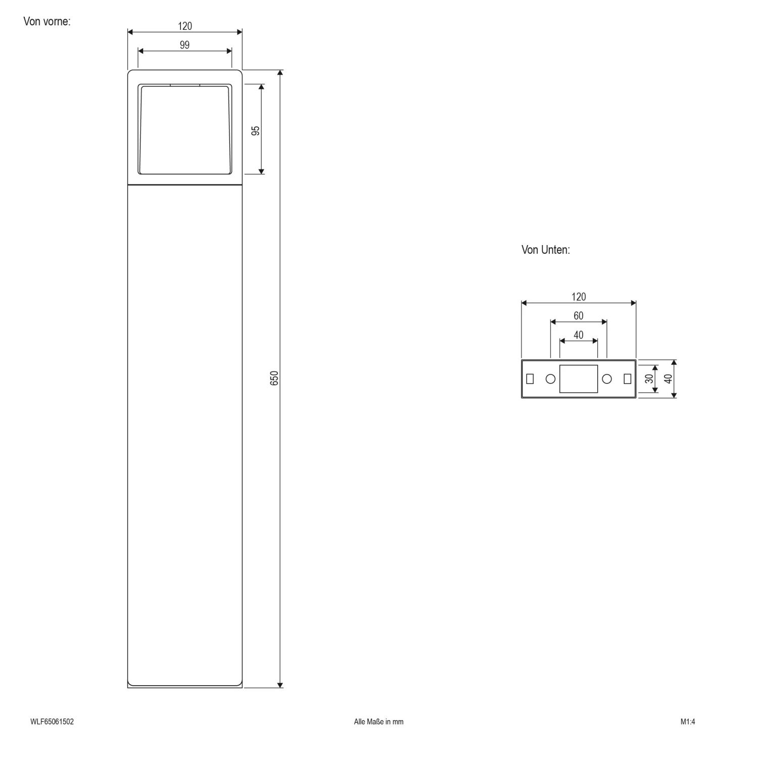 Massive Wegeleuchte gefertigt aus Aluminium im Druckgussverfahren und Pulverbeschichtet. Die Leuchte ist perfekt zur Beleuchtung von Gehwegen, als Randbeleuchtung für Beete und vieles mehr geeignet. Da der Lichtaustritt auf den schrägen Reflektor trifft entsteht bei der Leuchte kein Blendeffekt.