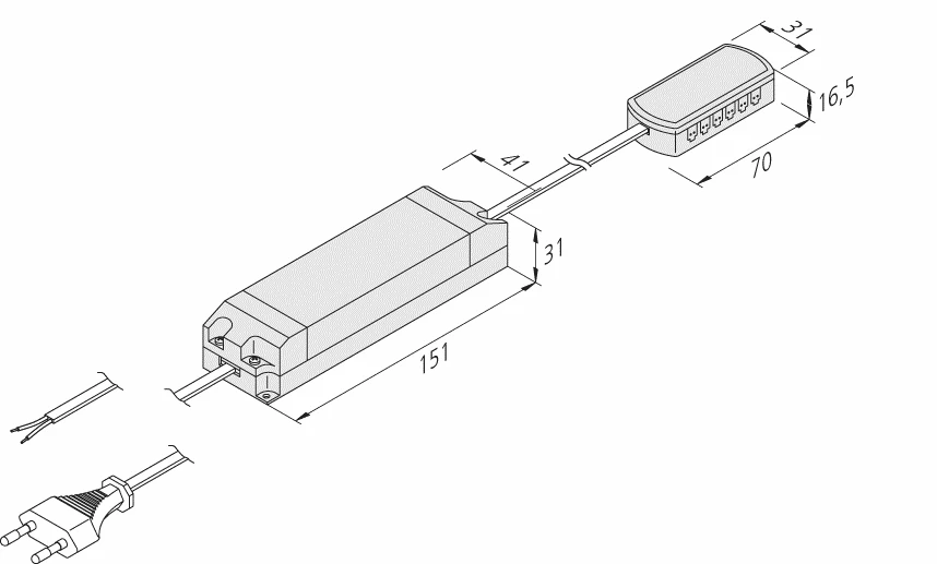 Maße: Länge 151 x Höhe 31 x Breite 41 mm