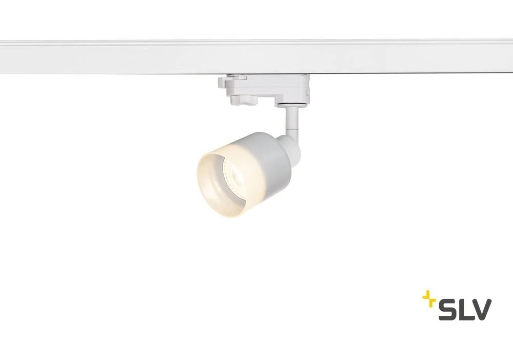 Dreh- und schwenkbarer Strahler für Hochvolt-Stromschiene 3Phasen, GU10-Fassung, Glas/weiß, max. 50W