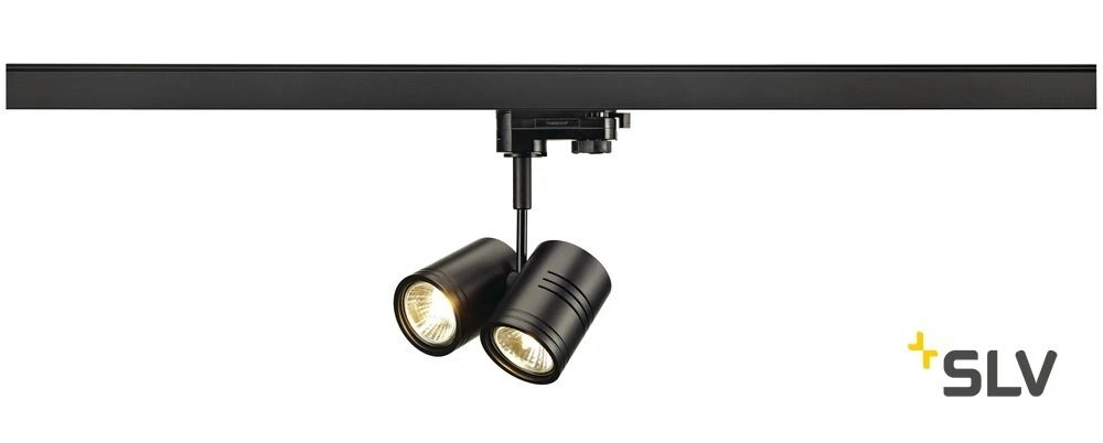 Zweiflammiger, Dreh- und schwenkbarer Strahler für Hochvolt-Stromschiene 3Phasen, GU10-Fassung, schwarz, max. 50W
