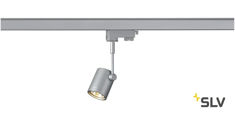 Dreh- und schwenkbarer Strahler für Hochvolt-Stromschiene 3Phasen, GU10-Fassung, silber, max. 50W