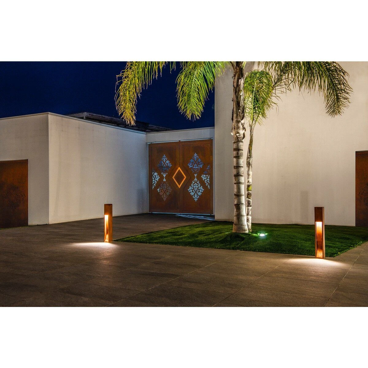 Ein Zusammenspiel zwischen dem verwendeten FeCSi-Stahl und den Witterungsverhältnissen, sorgt auf der Oberfläche der Leuchte für eine kontrollierte Rostschichtbildung.