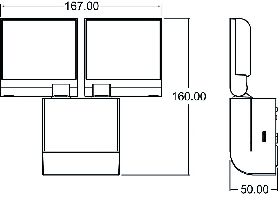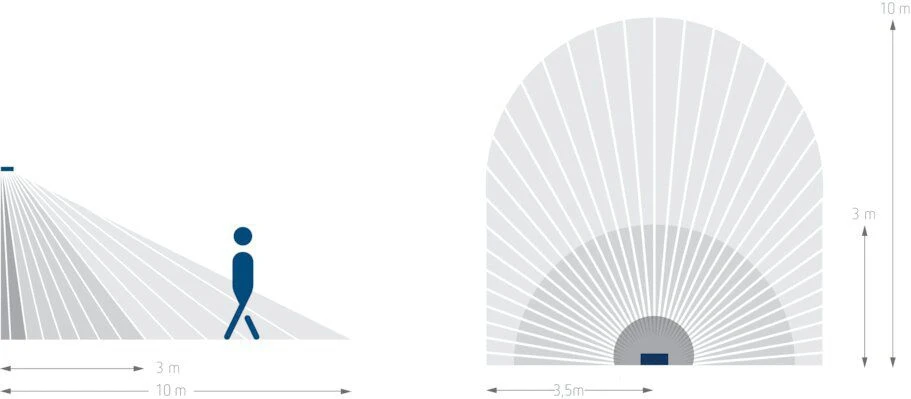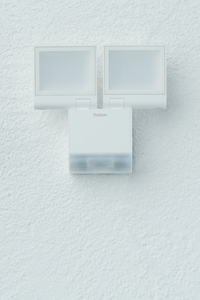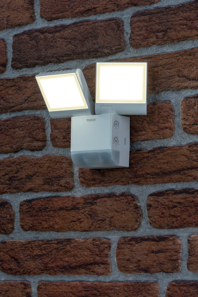 LED-Strahler für Wandmontage mit Bewegungsmelder, weiss, 4000 K, 2×900 lm, 2 LED-Strahler mit insgesamt 17 W, Erfassungsbereich 180° 10 m, zusätzlicher Schaltausgang Licht, vernetzbar über Draht